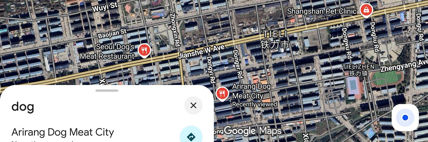 I spent a day and ten minutes in Tieli twice, both times via local “Rail Power”. Also, zoom in on Google Maps to find out what’s on the local dinner menu :-/